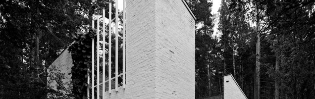 Um collage de materiais entre os troncos das bétulas na paisagem finlandesa: uma residência de hóspedes e retiro rural. Experimentação de ideias e formas, um projeto estranhamente coeso. A partir de um pequeno monte de terra compactada surge uma cerca grosseiramente constituída de longas varas de madeira.